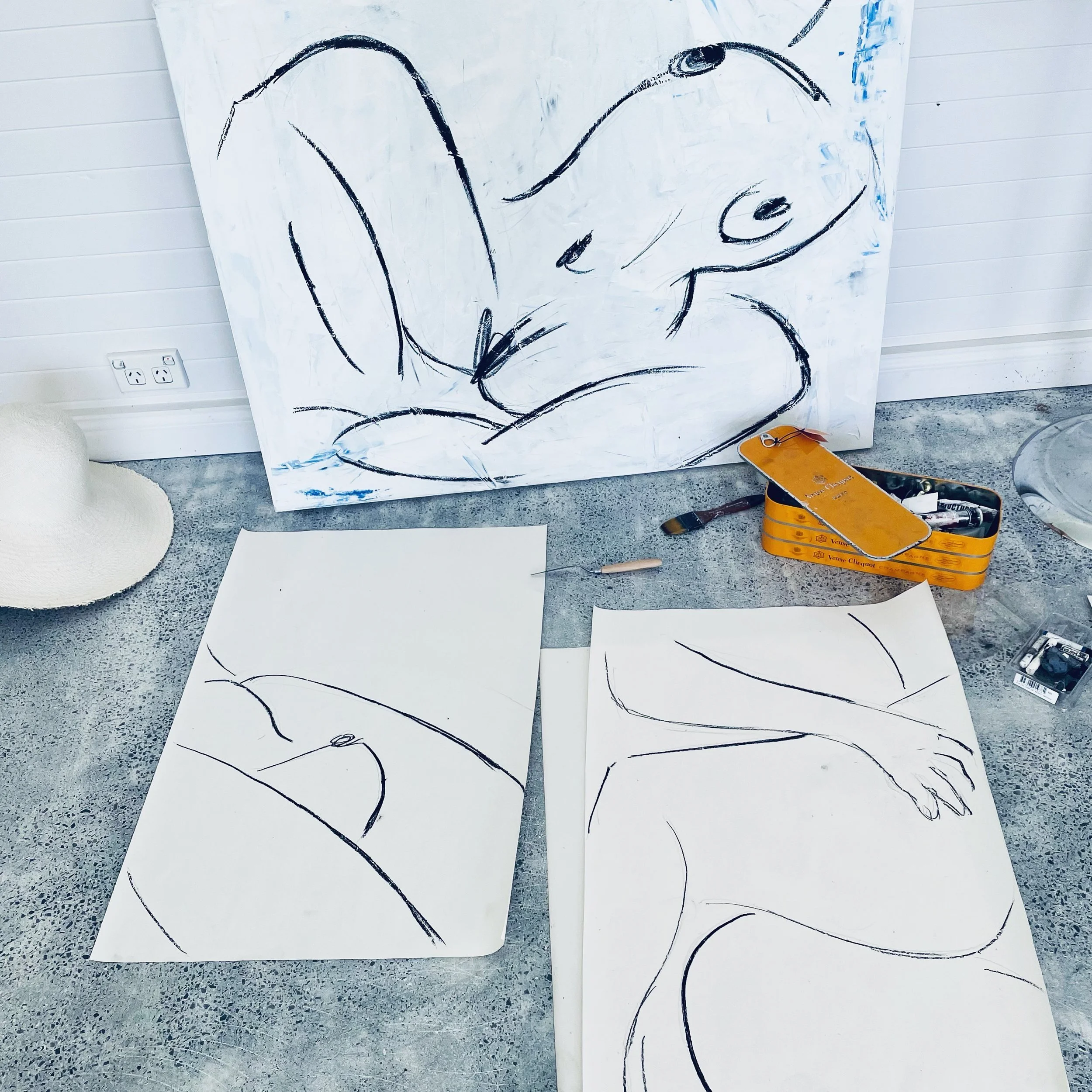 Series of large scale canvas exploring the fluency and form of the naked body.